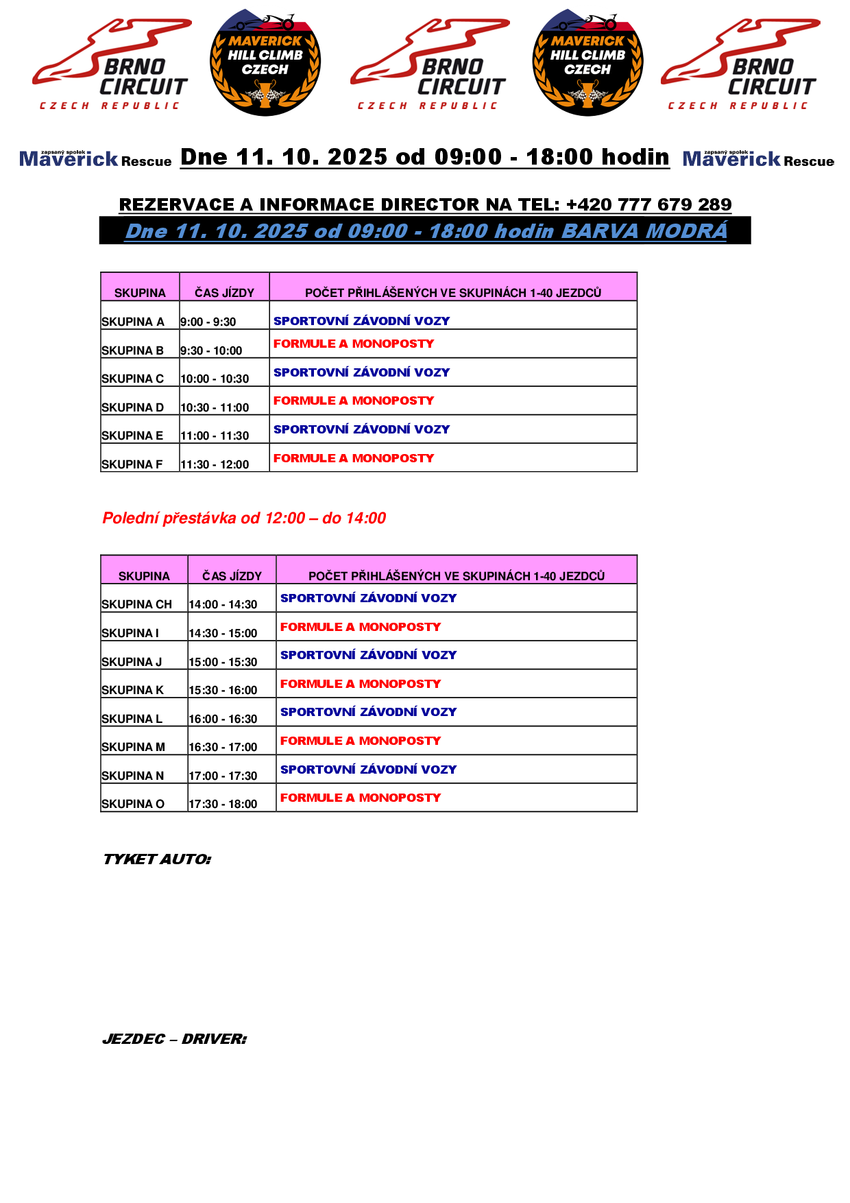 REGISTRACE JEZDCŮ A TÝMŮ - TESTOVÁNÍ ZÁVODNÍCH, SPORTOVNÍCH A FORMULOVÝCH AUTOMOBILŮ AUTOMOTODROM BRNO – ČR 11. 10. 2025